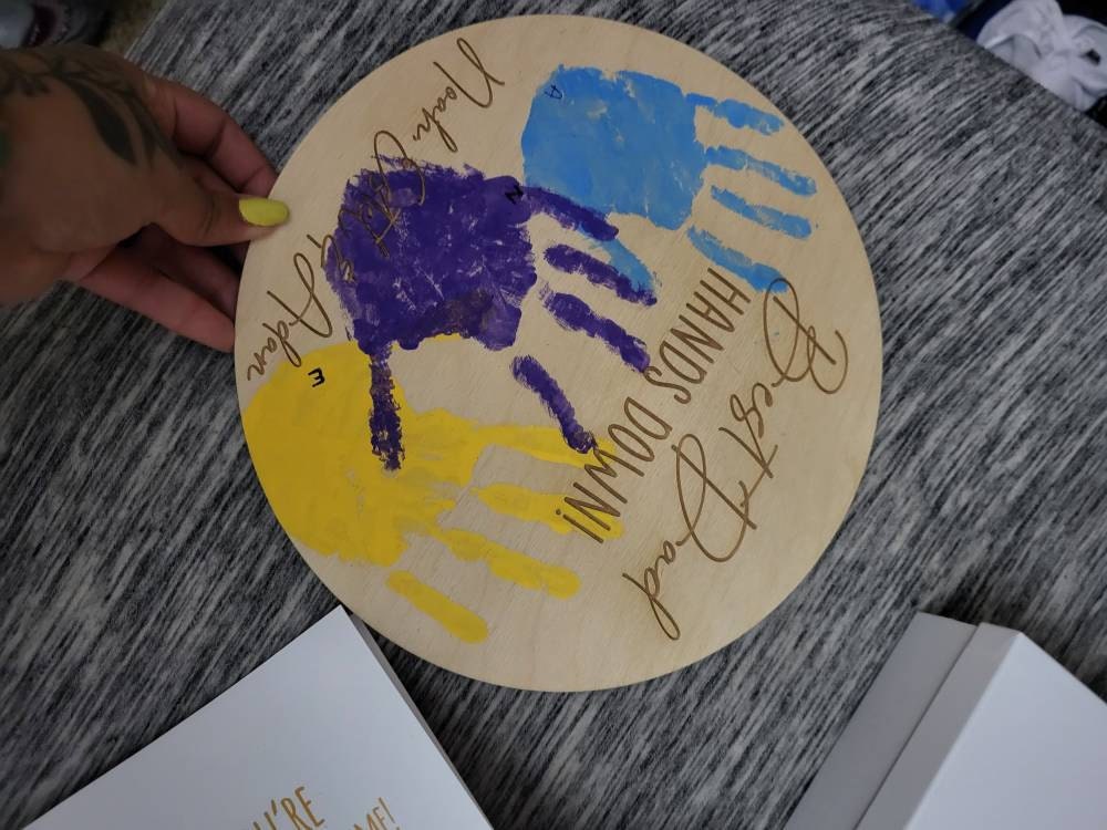 This is designed so that you can use stamp pads or paint to print your child's hands. Paint/stamp pads are not included with this purchase.