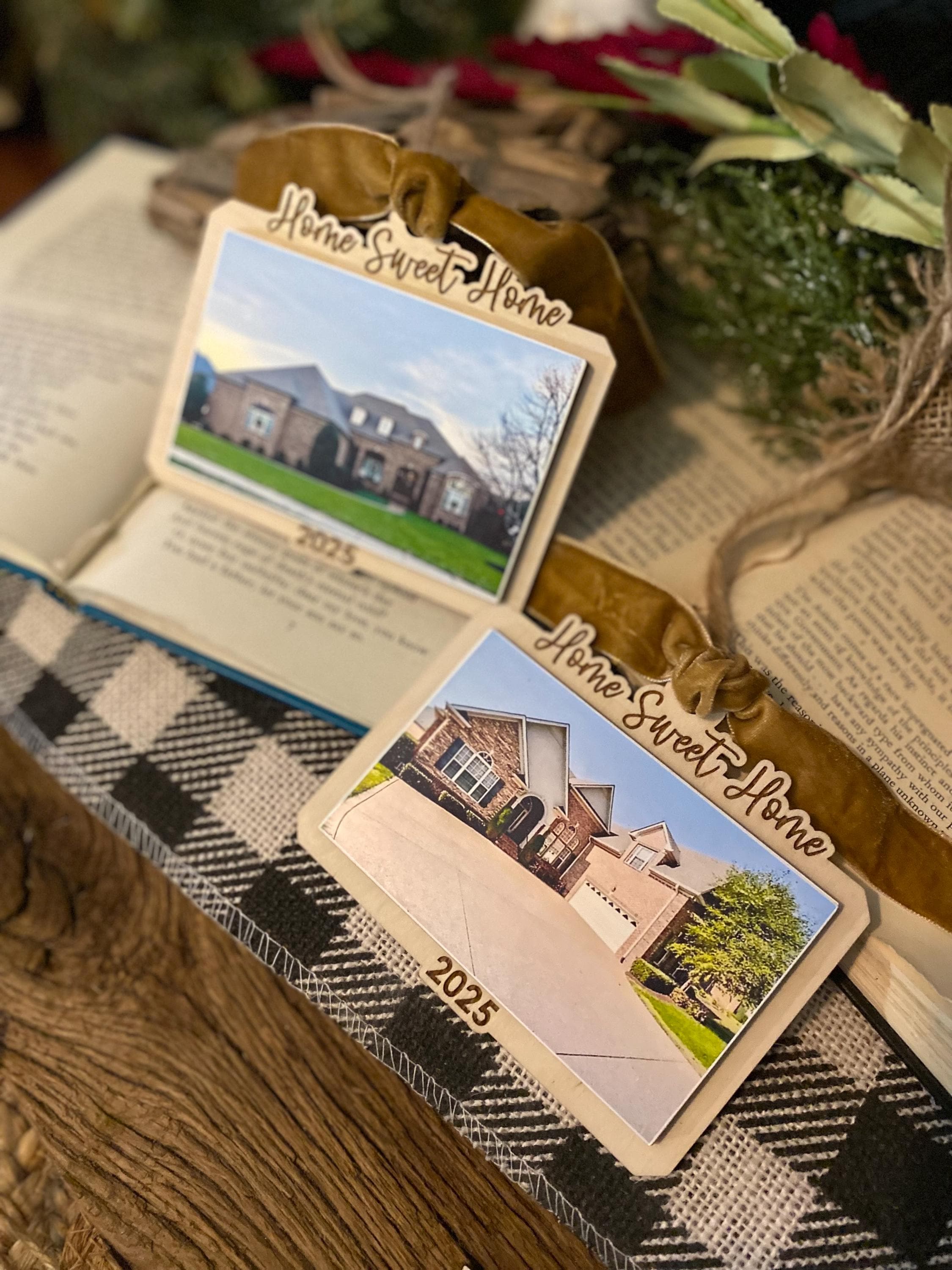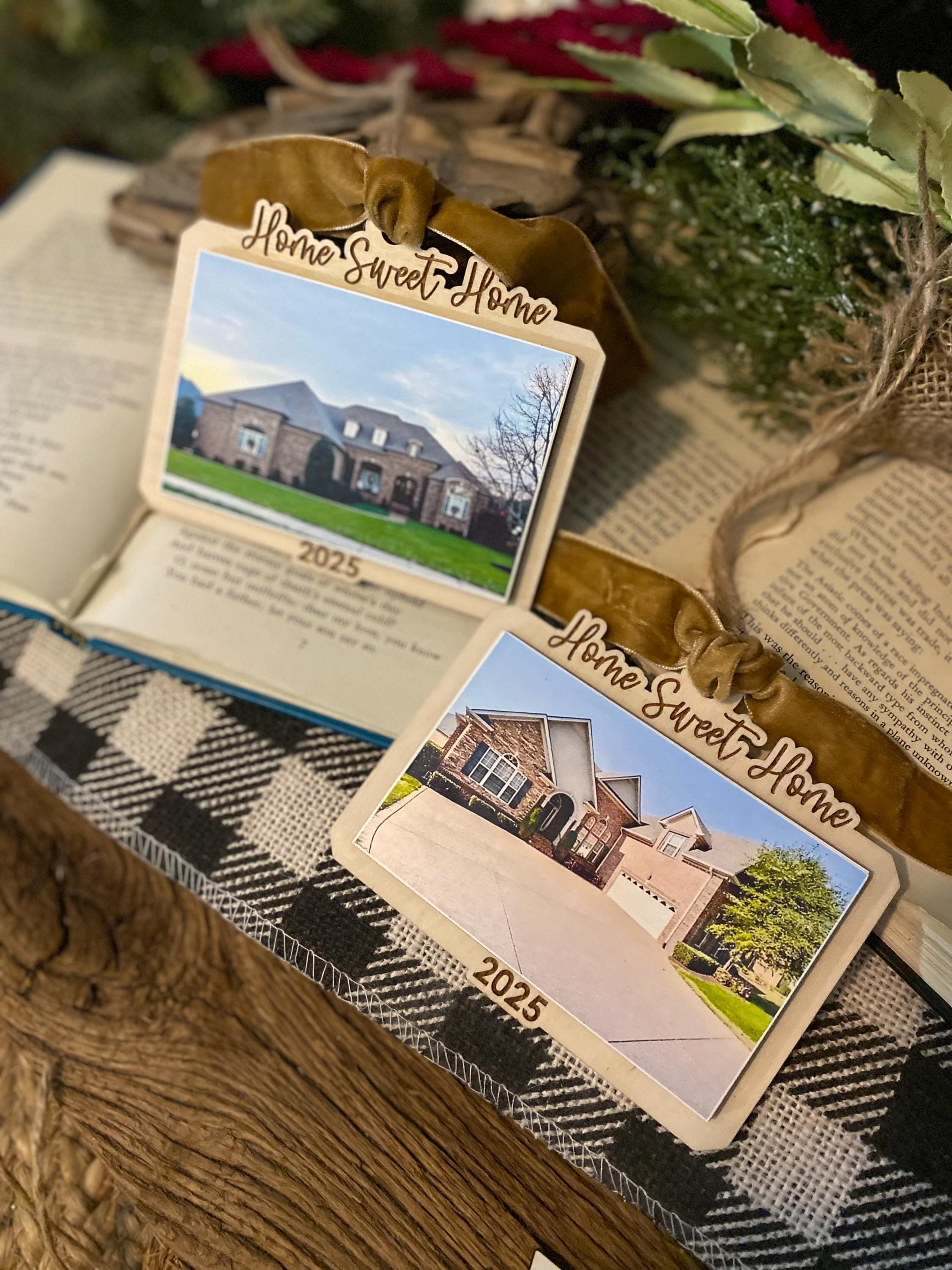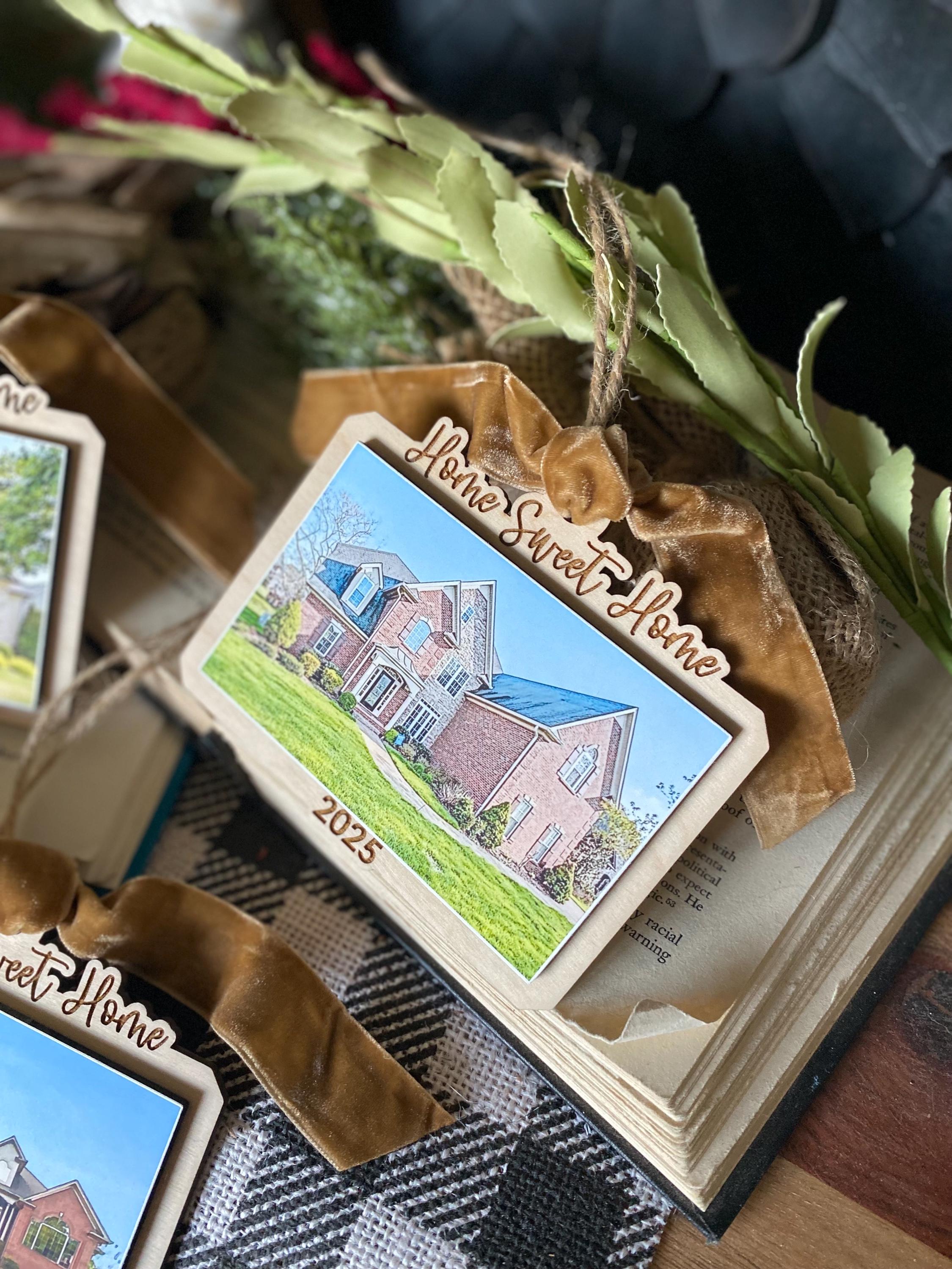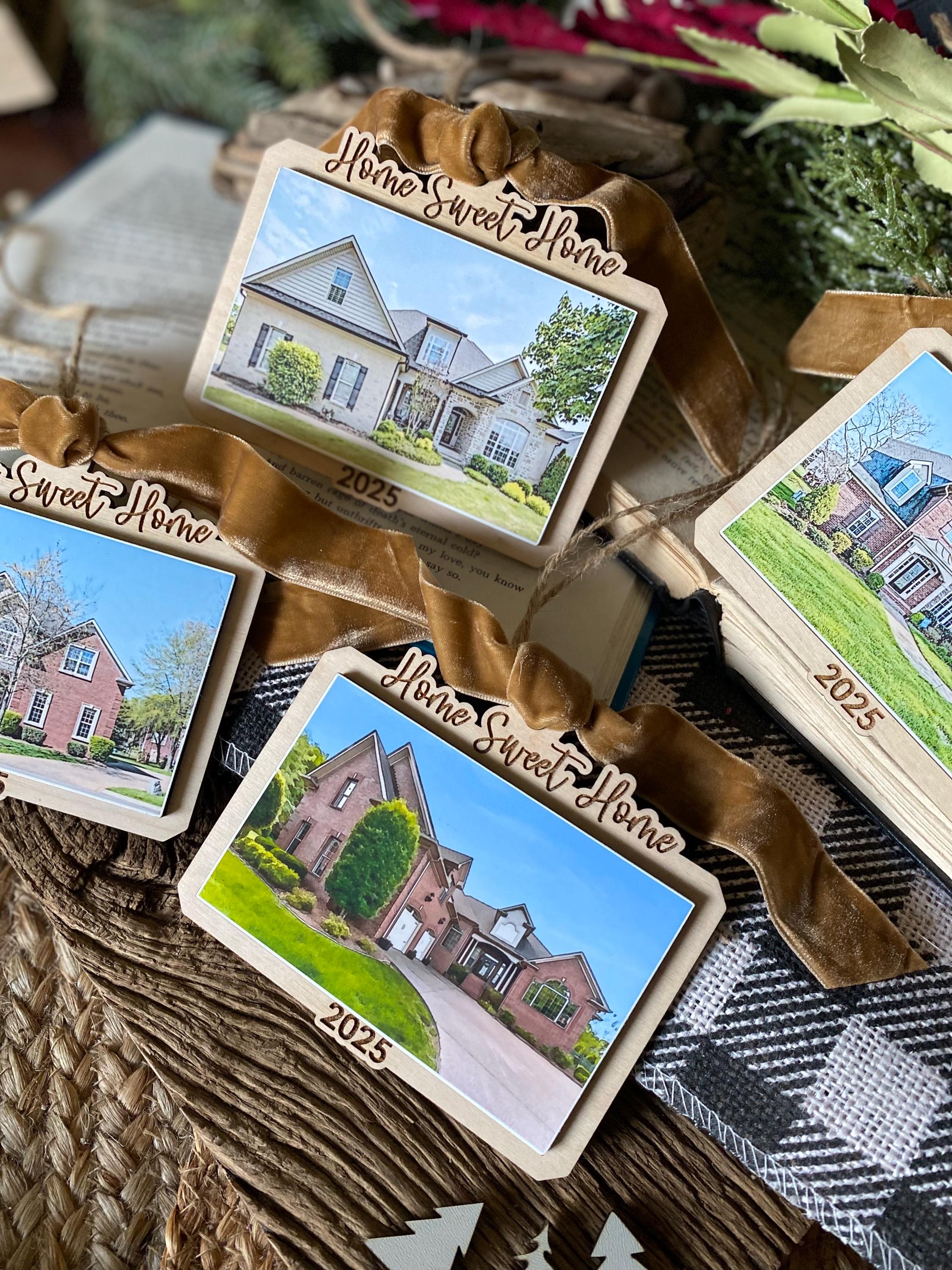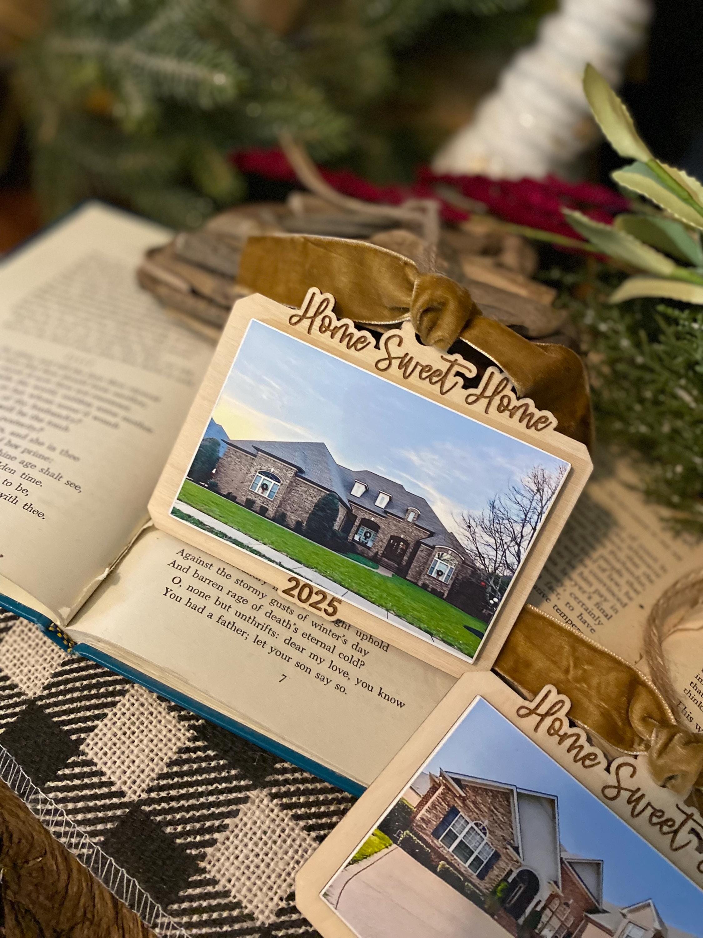This keepsake ornament features your actual home photo, professionally printed and mounted on a beautiful wood-style ornament, finished with a soft velvet ribbon for an elegant touch. Personalized with the year, it’s the perfect way to commemorate a first home, forever home, or new chapter.