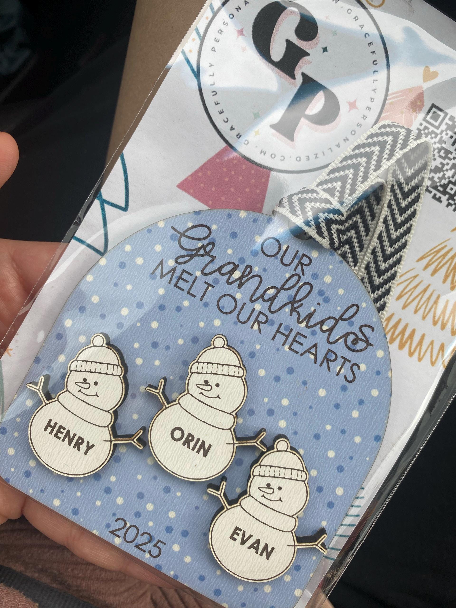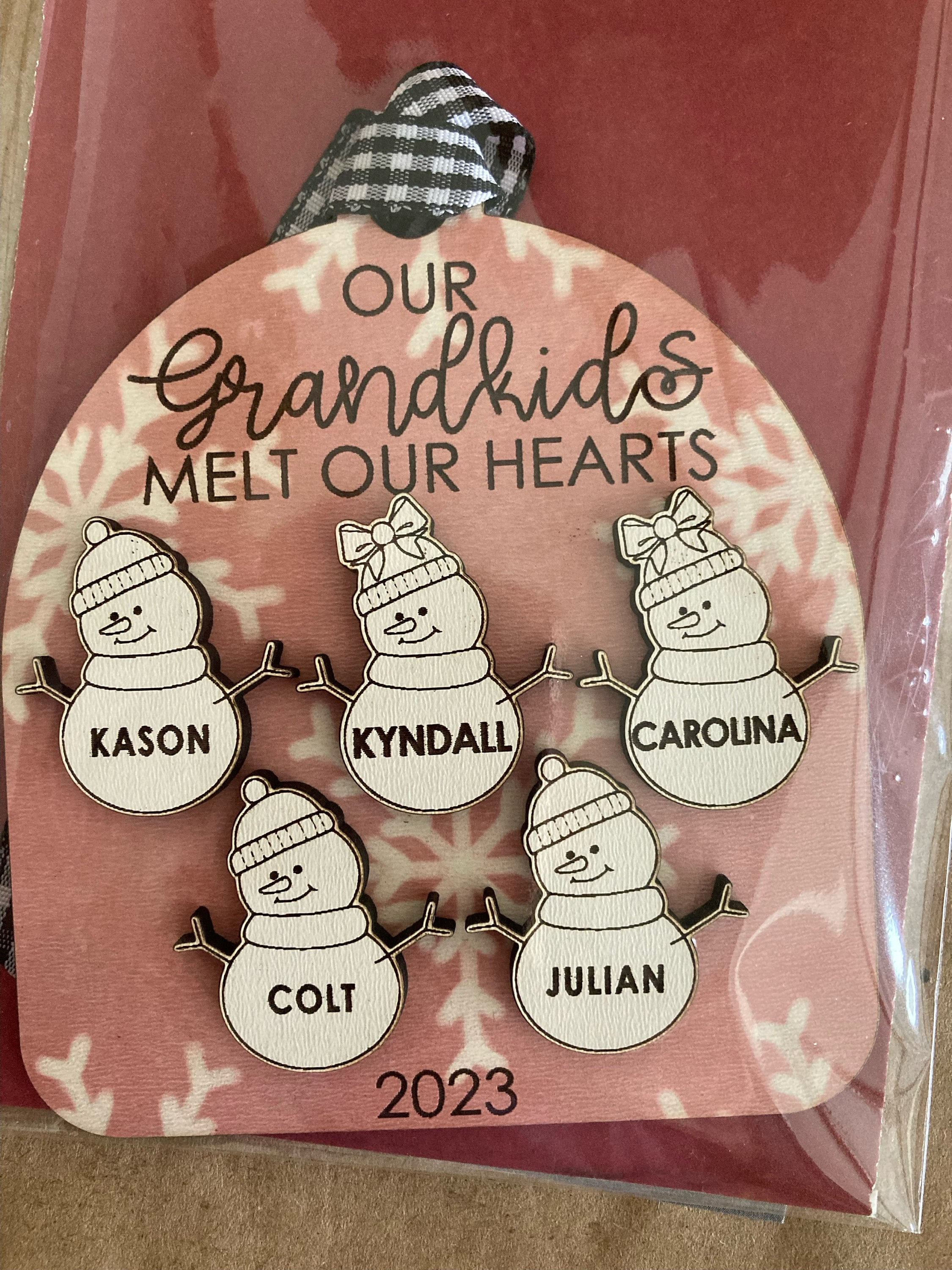 Grandkids Ornament, Snowman Family Ornament, Family Christmas Names Ornament, From Grandkids, Gift for Her, Gift for Him, Family Name Gift