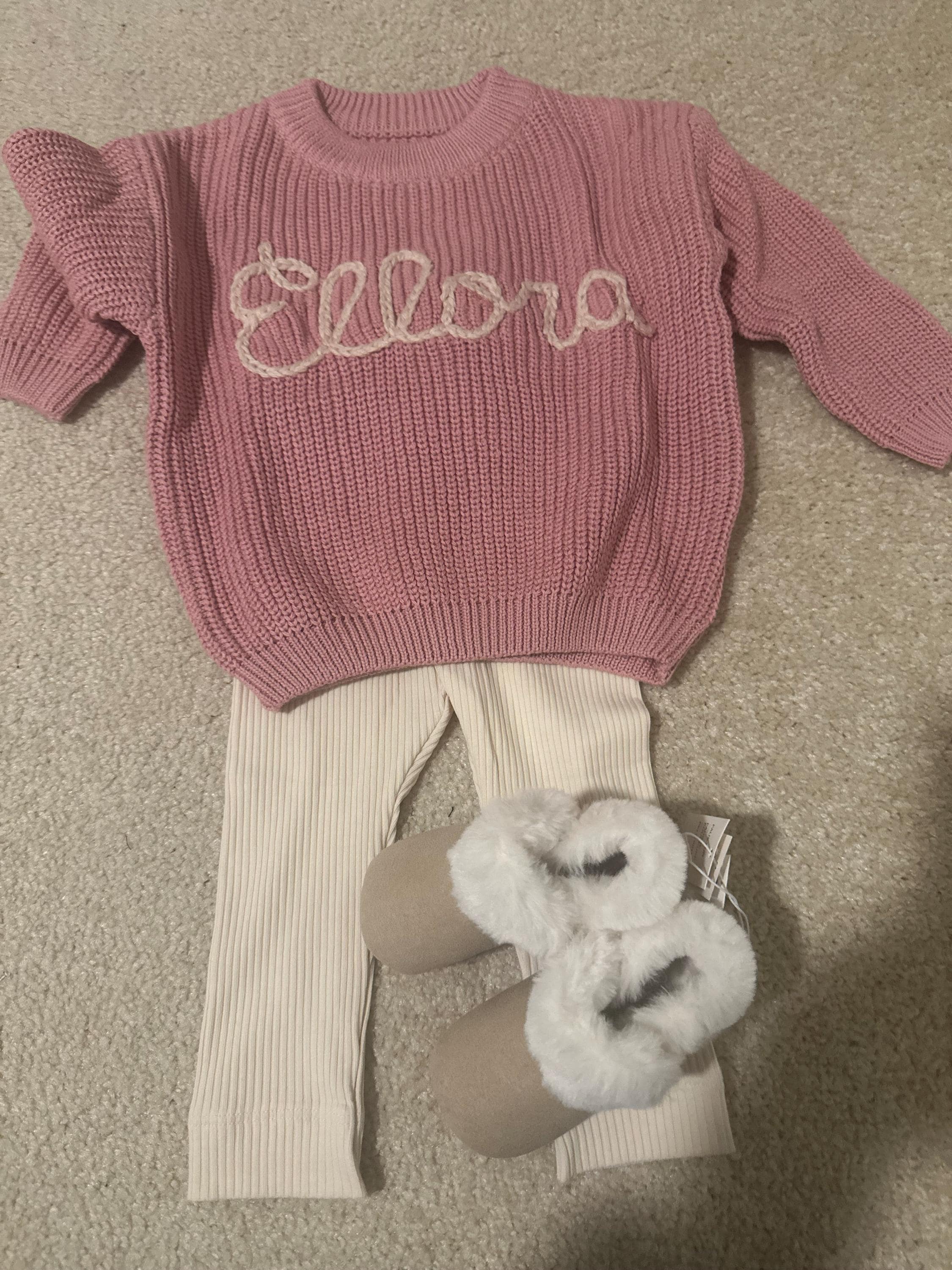 Baby Name Chunky Sweater, Hand Embroidered Baby Name Sweater