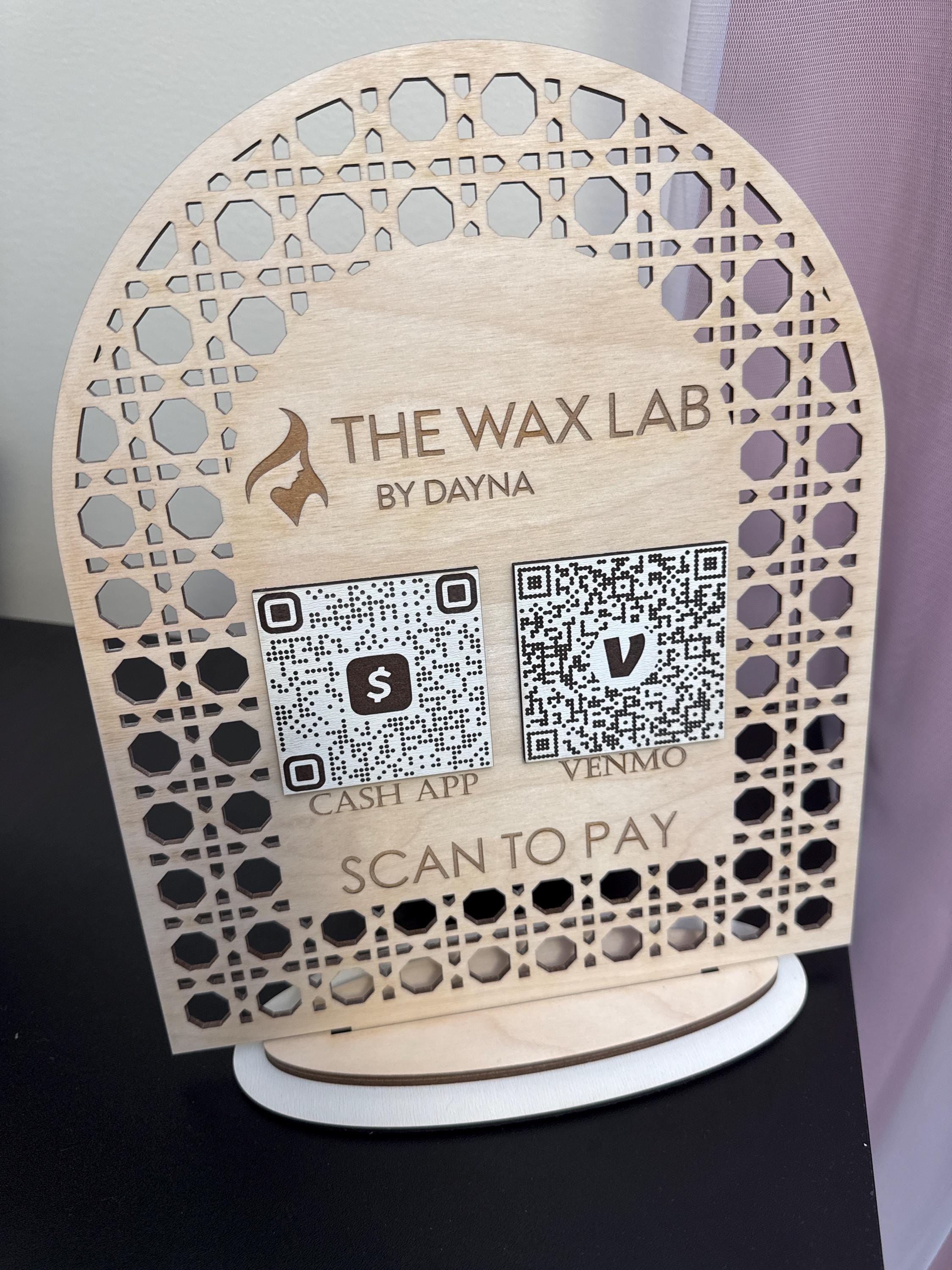 ~Rattan Sign with stand with up to 4 scan codes - Approximately 6" - WITHOUT LOGO