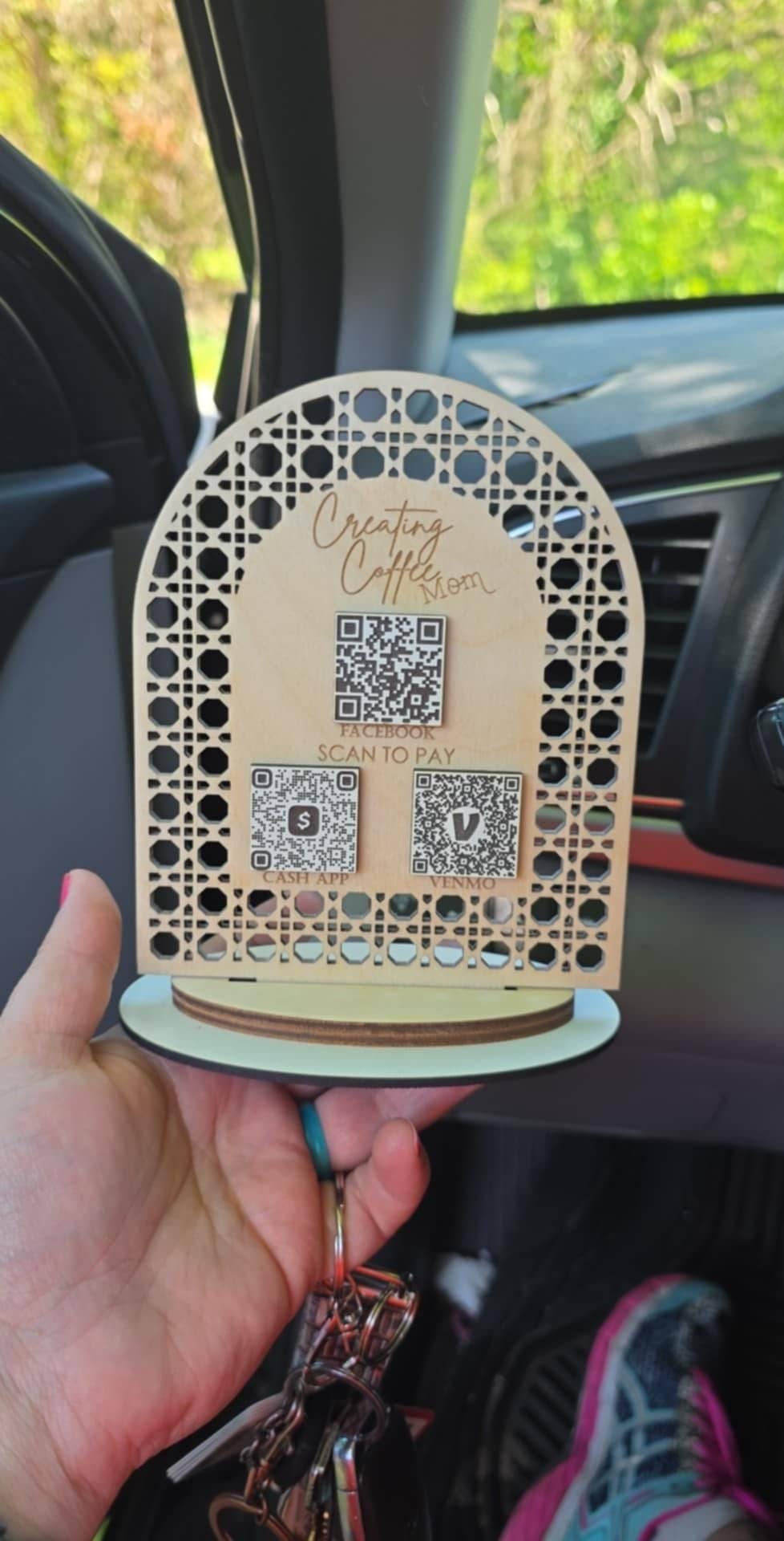 ~Rattan Sign with stand with up to 4 scan codes - Approximately 6" - WITH LOGO