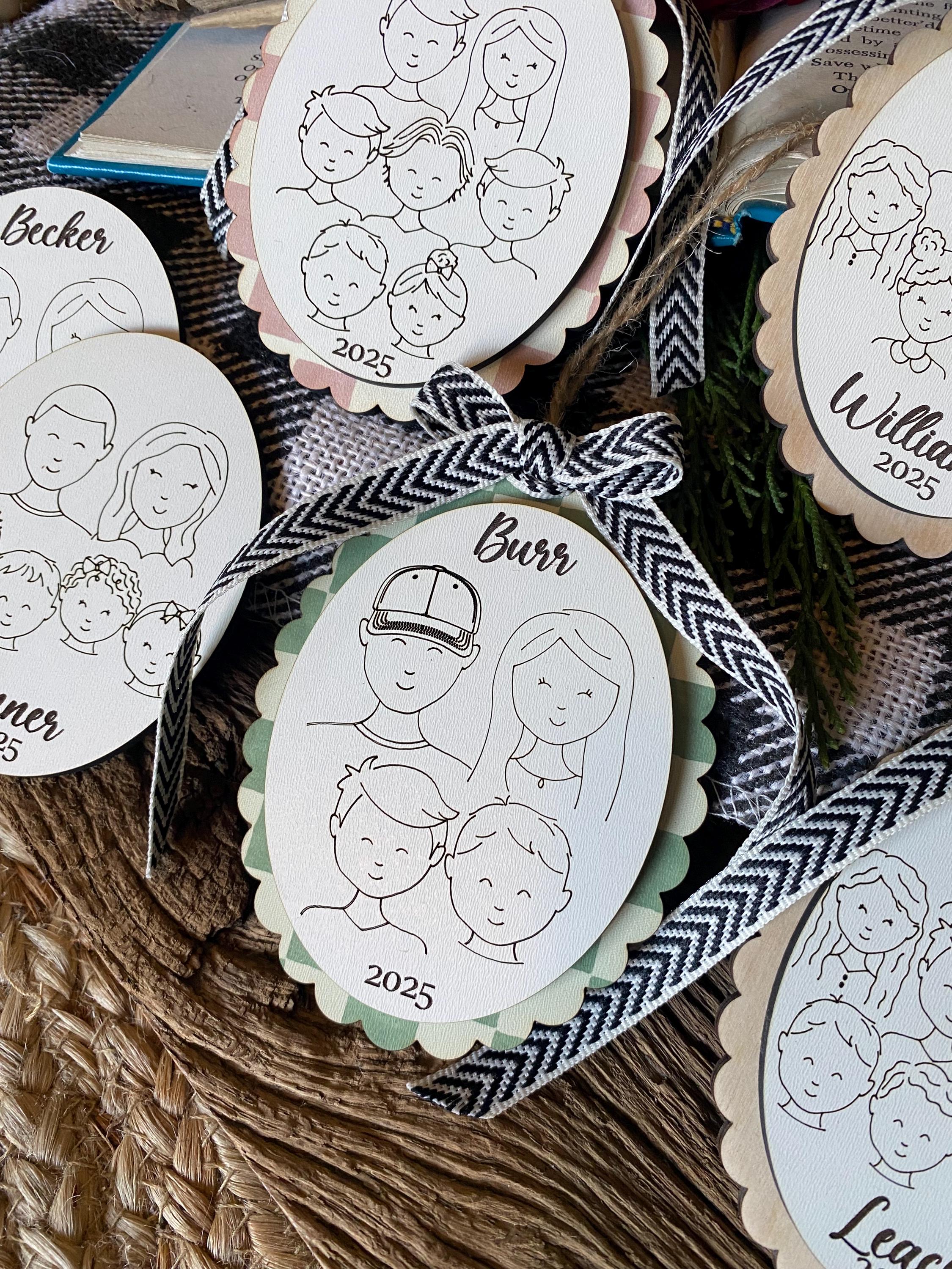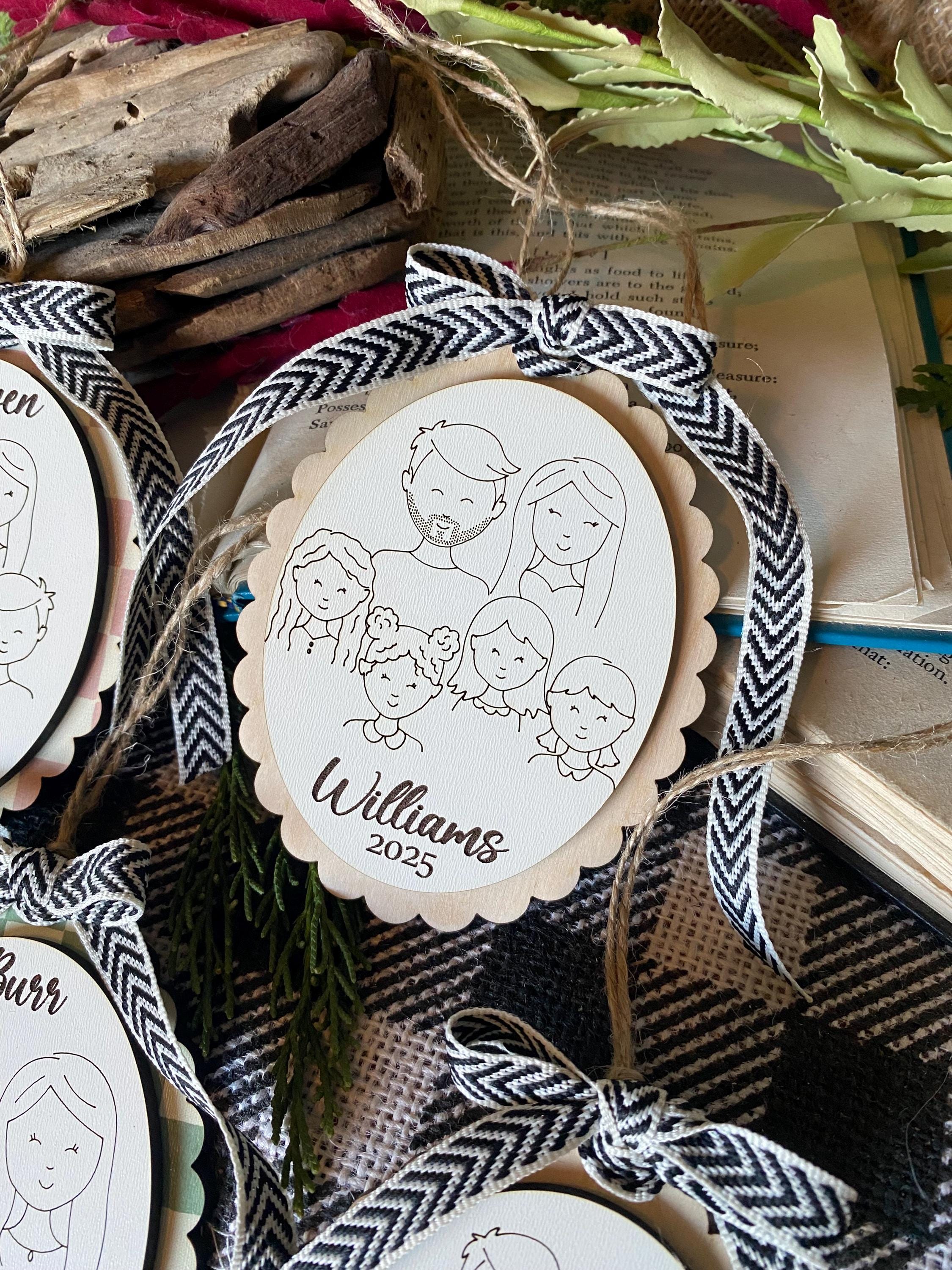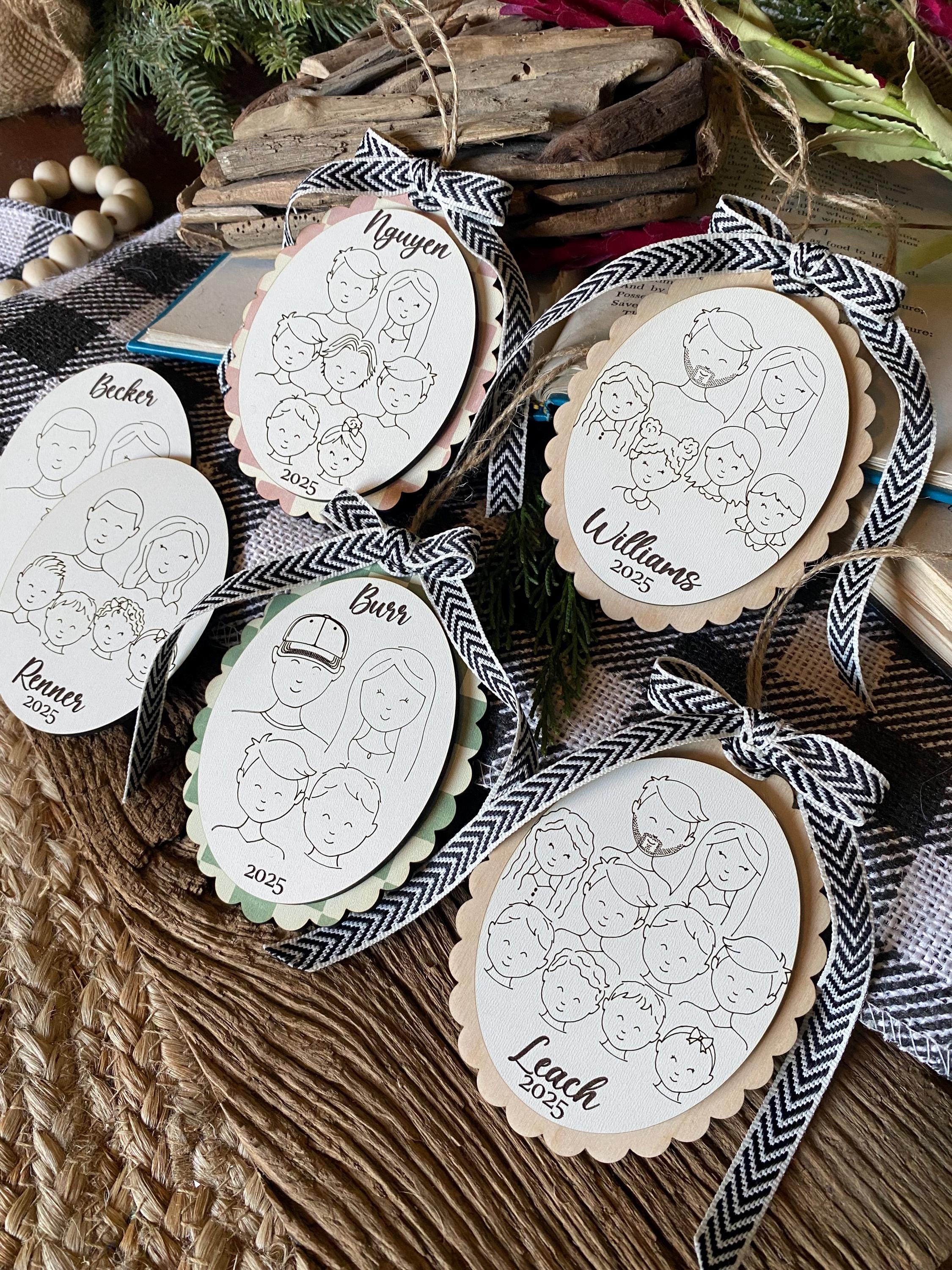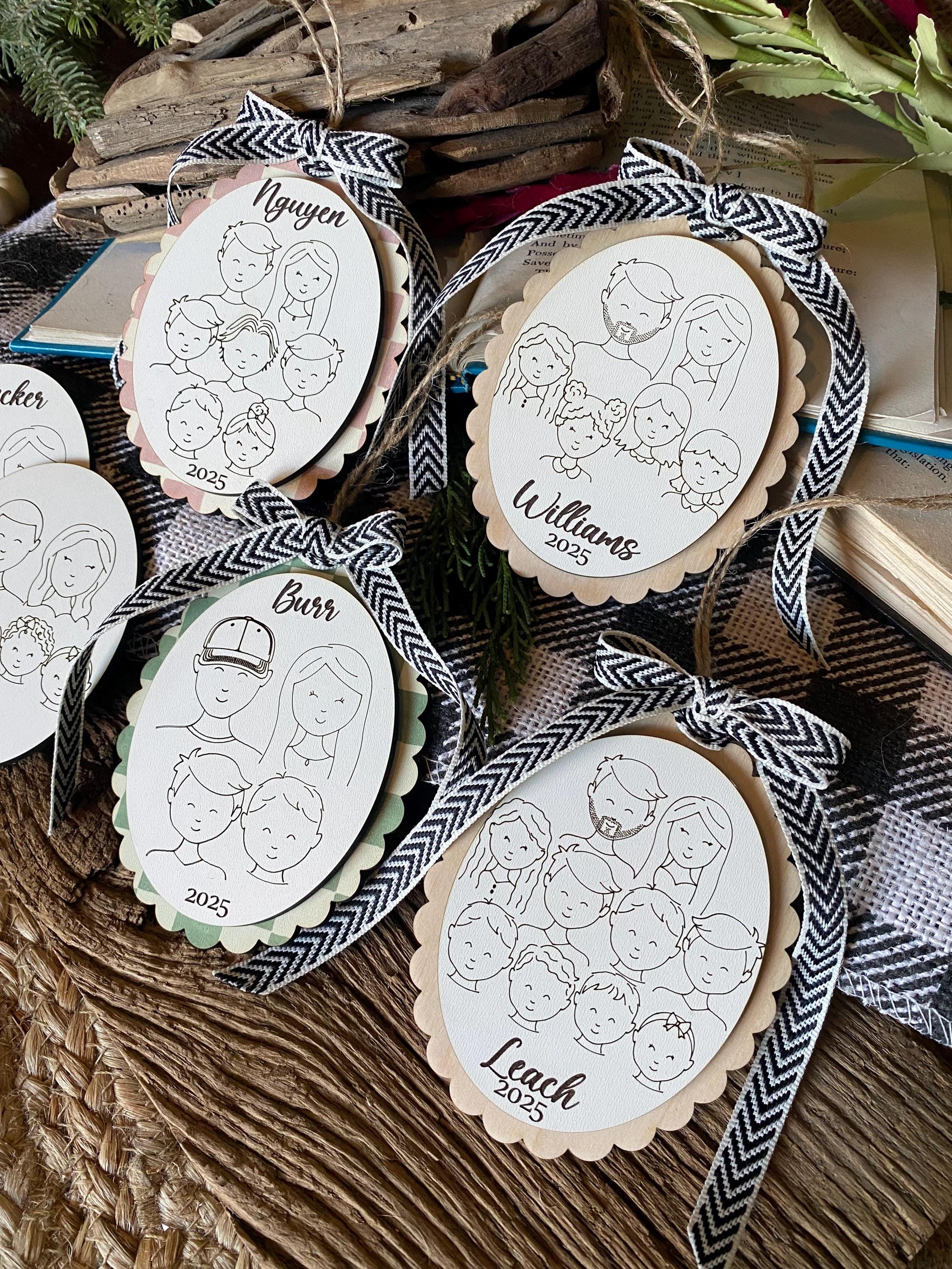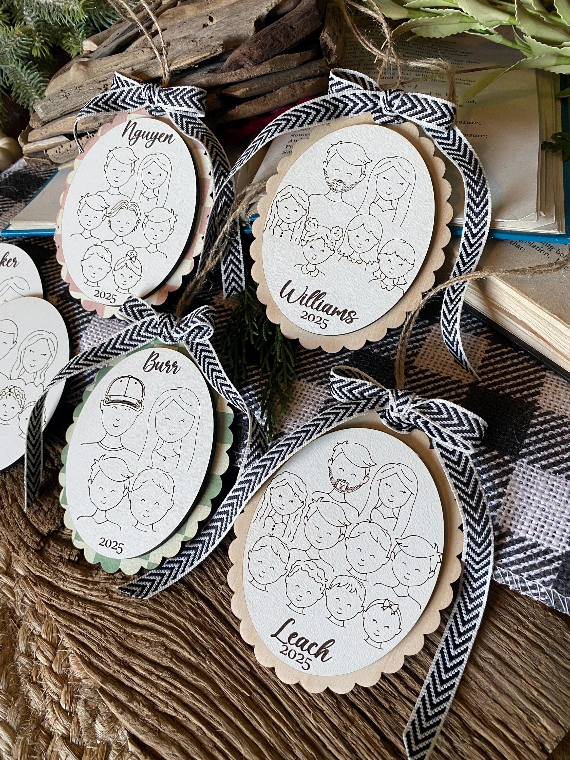 Family Drawing Christmas Ornament, Custom Family Portrait Ornament, Personalized Family Name Ornament, Line Art, Pet & Child Add-On, Laser Engraved Keepsake Christmas Ornament