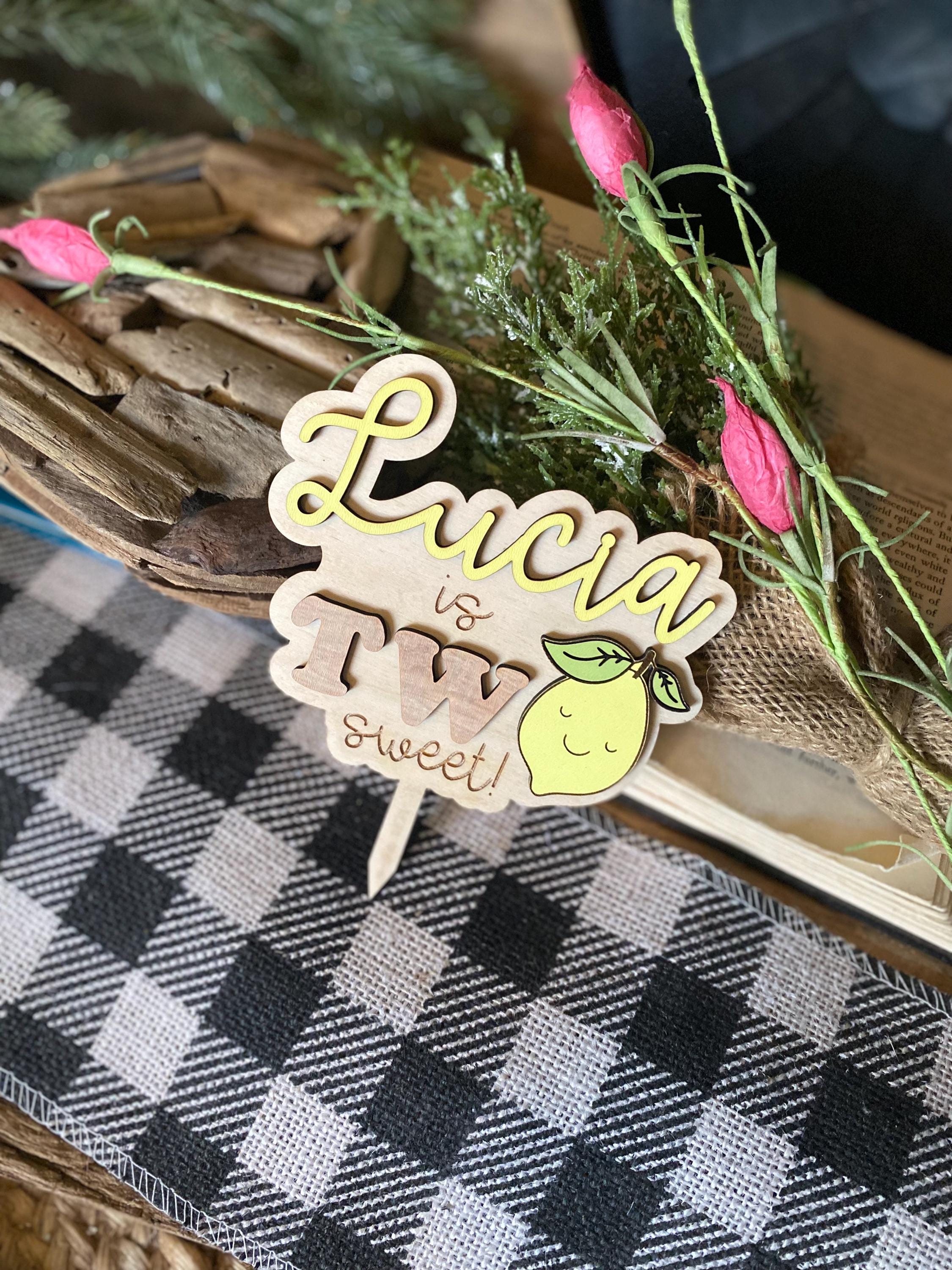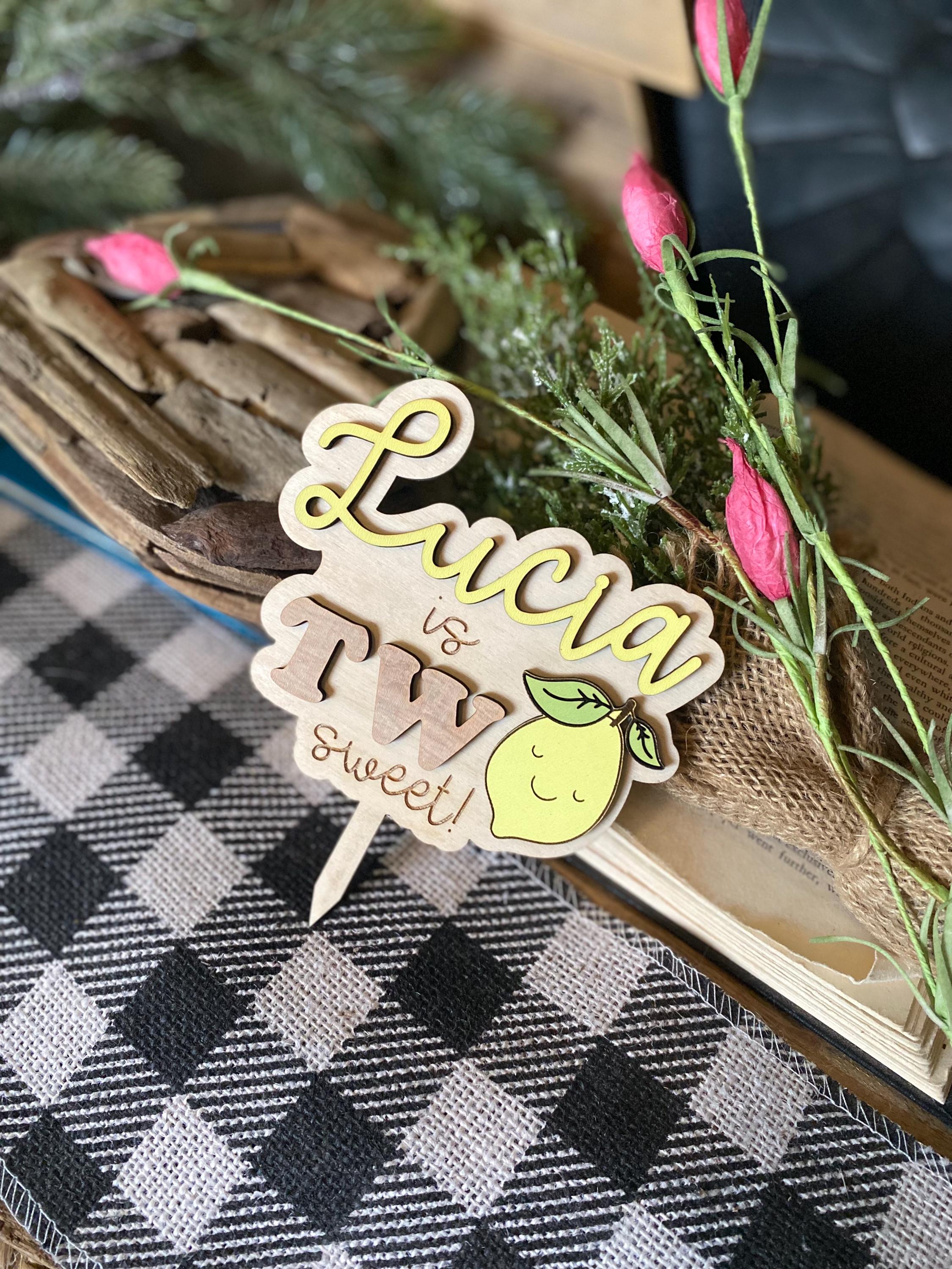 Two Sweet Birthday Cake Topper, Lemon Cake Topper, Lemon Birthday, Easy Peasy Lemon Cake Topper, Name Cake Topper, Lemon Birthday Topper