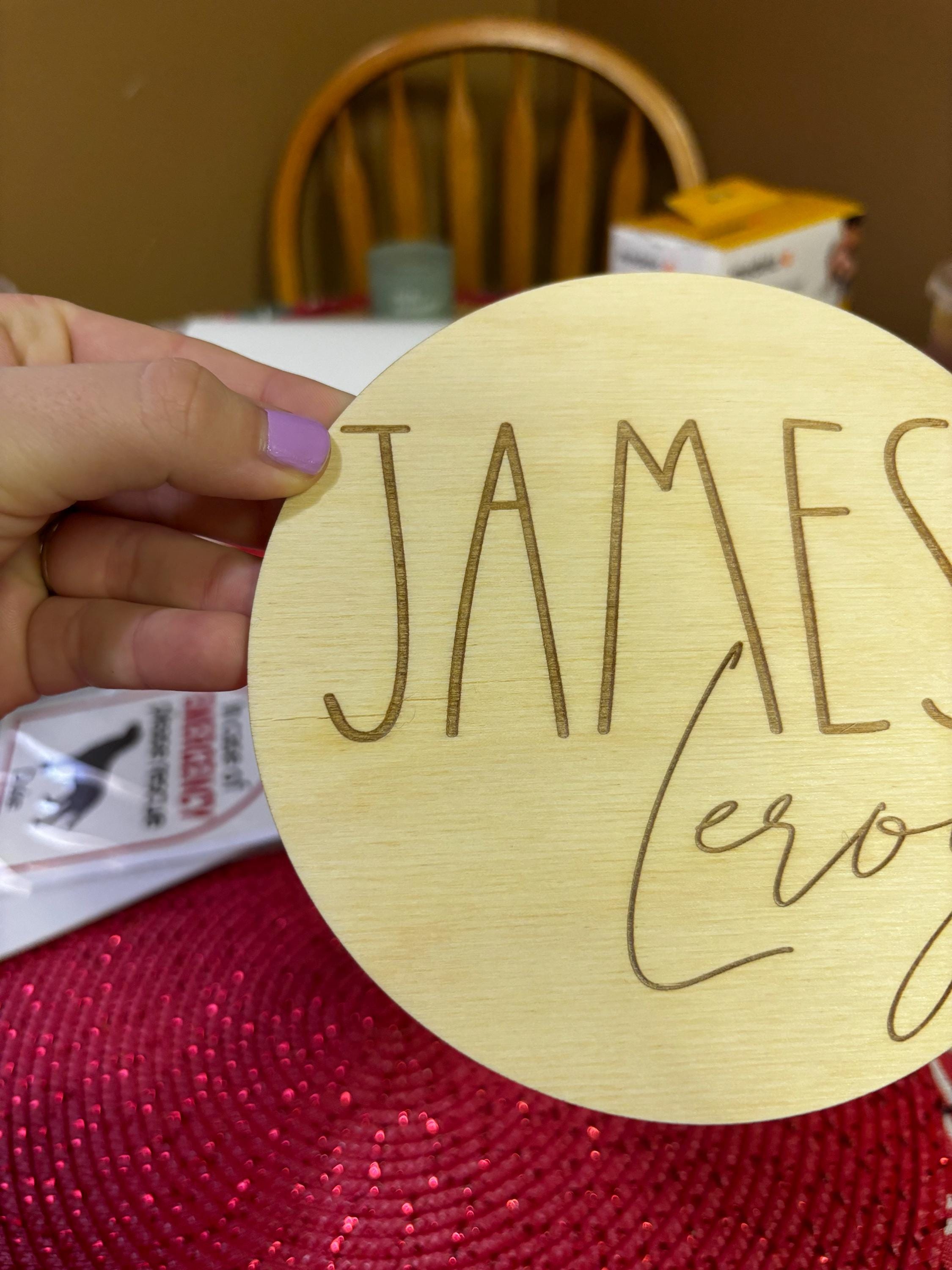 just received this sign in the mail, the personalization was as requested but the wood was cracked and bent, really upsetting as we are planning on using it for his arrival announcement.