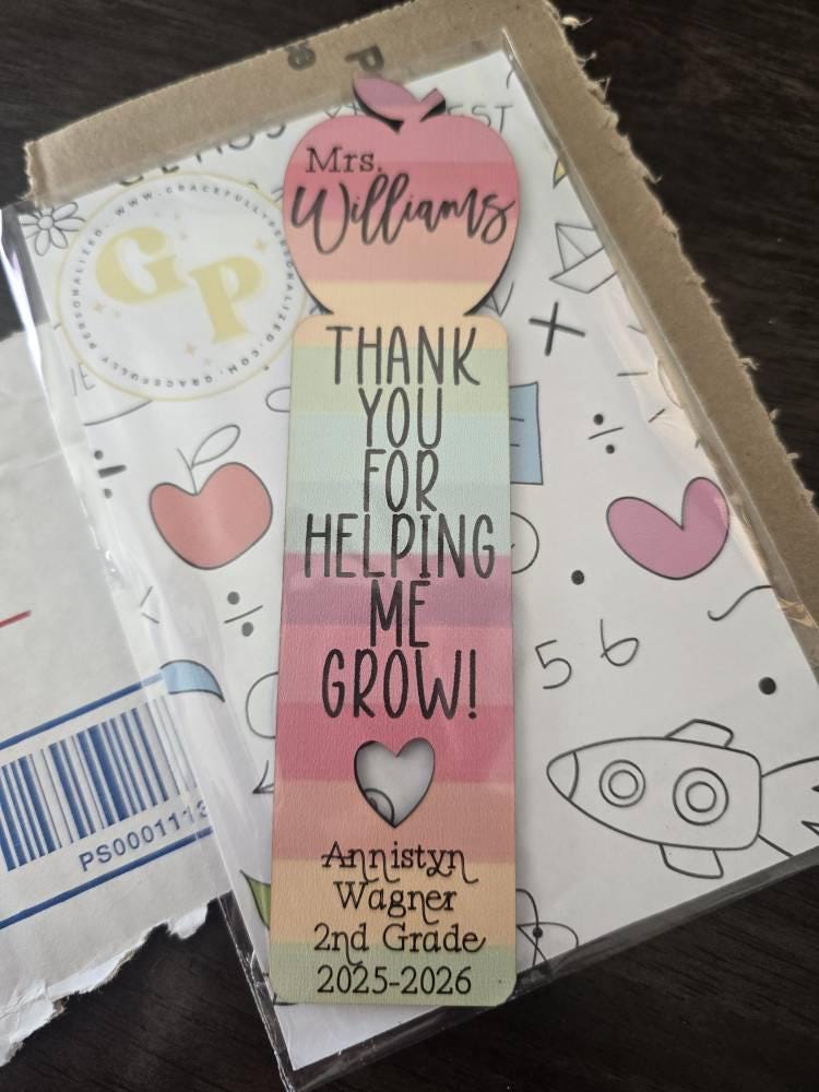 Teacher Bookmark, Teacher Appreciation Gift, Christmas Teacher Gift, Gift for Teacher, Personalized Bookmark, Thank You Teacher, Student Gift